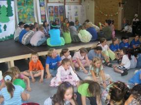 Nell'aula della palestra è stato allestito un palco dove gli alunni, circondati da multicolori cartelloni a tema scritti in italiano e ideati per l'occasione, hanno presentato, tutto in lingua italiana, canzoni italiane del repertorio classico: Per fare un tavolo (canzone "disegnata"), Gli indiani, Nella vecchia fattoria e Le chiavi di Pulcinella un pezzo scritto dal Dott. Scigliano. Divertente anche I musicanti di Brema, recitato in italiano e in tedesco che ha concluso, dopo circa un'ora, la serie di esibizioni.